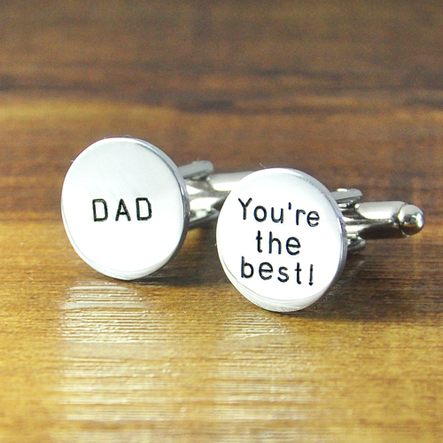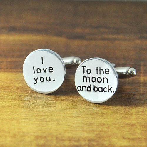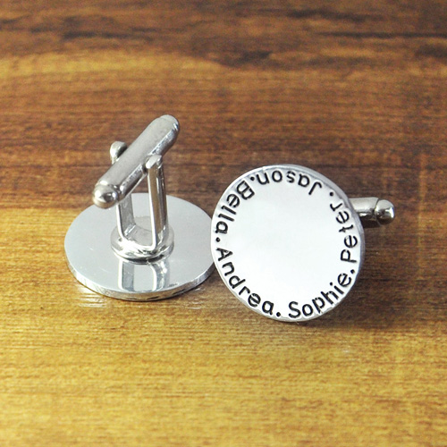 Hoogglans Chromen ronde manchetknopen. Laat deze luxe ronde manchetknopen graveren met een tekst naar keuze. De tekst zal zwart worden ingelakt. U kunt kiezen hoe u de tekst op de manchetknoop geplaatst wilt hebben zoals gecentreerd of rondom.