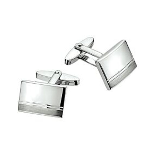 Set rechthoekige zilveren manchetknopen van 18,5 x 12,5 mm. De manchetknopen hebben een deels matte geborstelde afwerking.