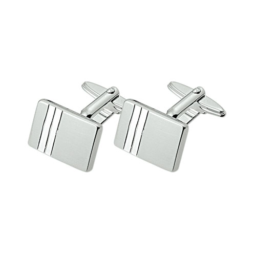 Set rechthoekige zilveren manchetknopen van 18 x 12 mm. De manchetknopen hebben een matte geborstelde afwerking.