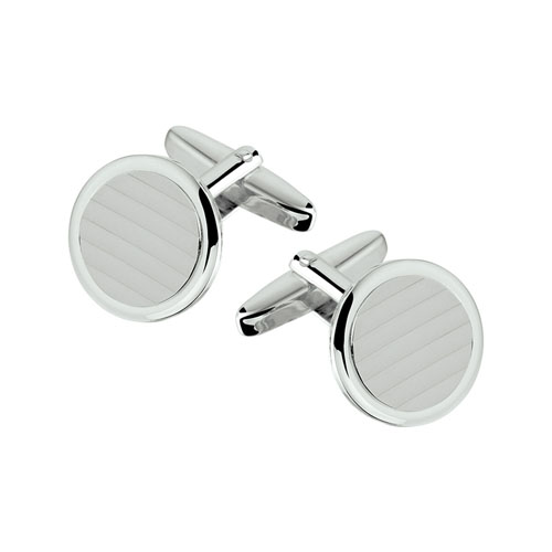 Set ronde zilveren manchetknopen met een diameter van 16.5 mm. De manchetknopen hebben een matte geborstelde afwerking.