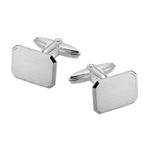 Set zilveren manchetknopen met de afmeting 16,5x12,5mm. De manchetknopen zijn van gerhodineerd zilver en achtkantig van vorm.