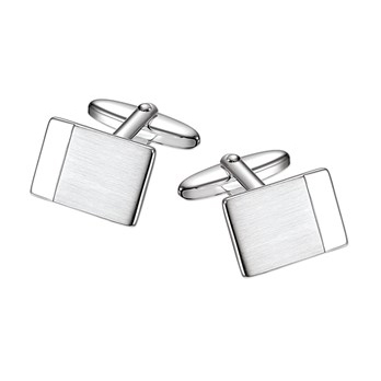 Set rechthoekige zilveren manchetknopen. De manchetknopen hebben een combinatie van een hoogglans en matte geborstelde afwerking.