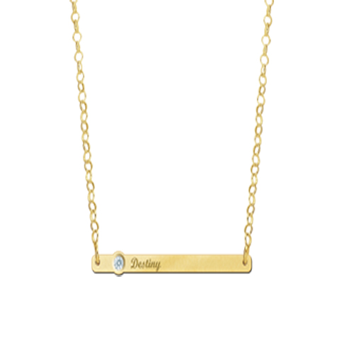 Gouden Bar naamketting met Zirkonia Names4Ever