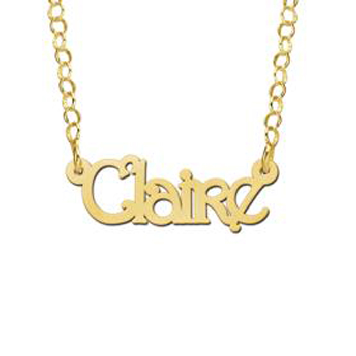 De afmeting van dit model heeft met een naam van 6 letters een formaat van ca. 9mm hoog en 24mm breed, dit is slechts een indicatie daar de naamketting op maat wordt gemaakt. De naam of tekst mag maximaal 12 tekens bevatten. De ketting is gemaakt van massief 14 karaats goud.