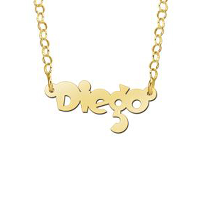 Deze gouden kindernaamketting heeft speels lettertype. De jasseron ketting heeft een lengte van 35cm.