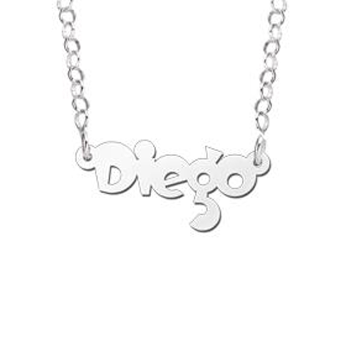 Deze zilveren kindernaamketting heeft speels lettertype. De jasseron ketting heeft een lengte van 35cm.