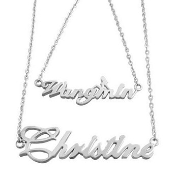 Een uniek en zeer persoonlijk sieraad, deze dubbele ketting met plaats voor 2 namen. De verzilverde ketting bestaat uit 2 hangers met daarop een naam of andere tekst die een speciale betekenis heeft voor u. Voor de tekst heeft u de keuze uit maar liefst 13 verschillende lettertypes. Daarnaast kunt u symbolen als een hartje of sierlijke krul toevoegen aan de hangers.