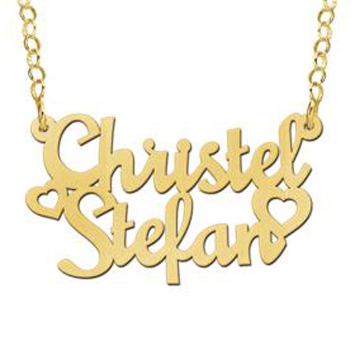 Echte liefde verdient een bijzonder sieraad. Op deze sierlijke gouden naamketting is plaats voor maar liefst 2 namen, zodat de liefde voor iedereen zichtbaar is. Of voeg een andere tekst (van maximaal 12 letters per regel) naar keuze toe: de mogelijkheden zijn eindeloos!