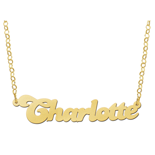 Sierlijke 14 karaats massief gouden naamketting met uw eigen naam of tekst van maximaal 12 tekens. De tekst voegt u eenvoudig toe in de vervolgstappen.