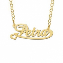 Deze naamketting is gemaakt van 14 karaats goud over 925 Sterling zilver. De vergulde naamketting model Petra is een bijzonder smaakvol collier. Het straalt iets liefs uit door het schattige hartje wat aan de naam vast gemaakt is.