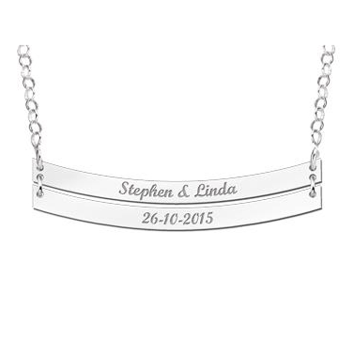Een prachtig en persoonlijk symbool van eeuwige liefde. Deze naamketting is uniek door zijn dubbele regels waardoor er plaats is voor 2 namen of een andere tekst naar keuze.