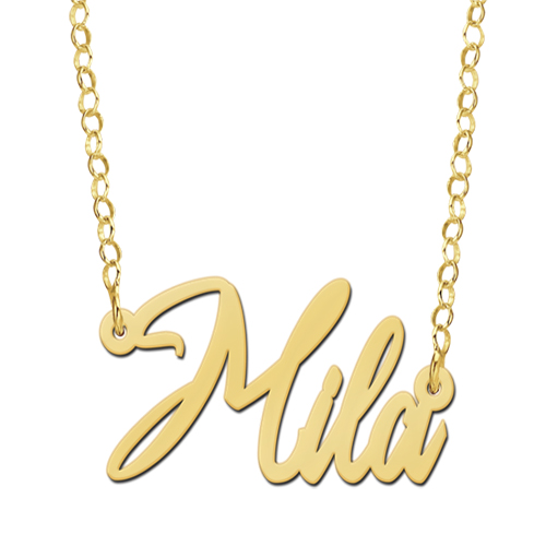 Verras iemand of jezelf met deze mooie gepersonaliseerde naamketting met een gebogen lettertype. De jasseron ketting heeft een lengte van 42cm.