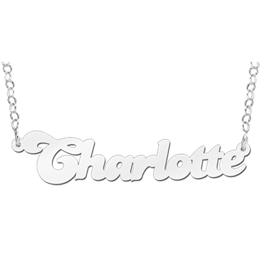 De afmeting van dit model heeft met de naam Charlotte een formaat van ca. 13 mm hoog en 60 mm breed, dit is slechts een indicatie daar de naamketting op maat wordt gemaakt met een naam welke u in de vervolgstappen opgeeft.