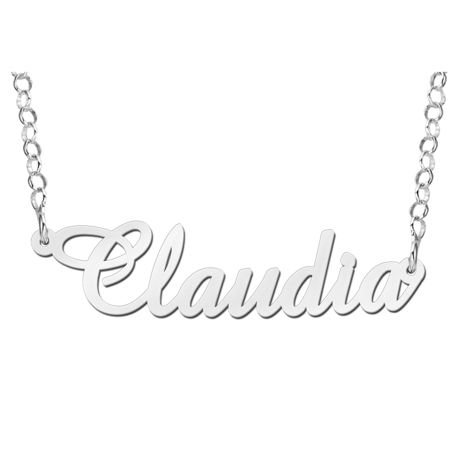 De afmeting van dit model heeft met de naam Claudia een formaat van ca. 12 mm hoog en 40 mm breed, dit is slechts een indicatie daar de naamketting op maat wordt gemaakt met een naam welke u in de vervolgstappen opgeeft.