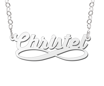 Zilveren infinity naamketting met een jasseron ketting van 42cm of 50cm. De naam van maximaal 12 tekens wordt in prachtige letters uitgevoerd. Het infinity teken staat symbool voor oneindigheid, constante vernieuwing, harmonie, evenwicht en verbondenheid. Het infinity symbool wordt onder de naam uitgevoerd.