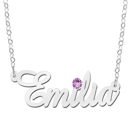 Deze zilveren naamketting met geboortesteen naar keuze is gemaakt van 925 zilver en heeft een zilveren jasseron ketting van 42 cm.