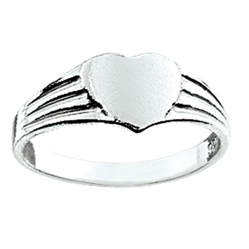 Deze mooie massieve graveerring heeft een hartvormige graveerplaat, is gemaakt van wit zilver en heeft een hoogglanzen afwerking. De ring kan bij ons gepersonaliseerd worden met een letter.