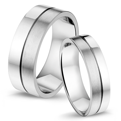 De ringen hebben een matte en glanzende helft, in het midden is een diepliggende groef. Het is mogelijk om de ringen aan de binnenzijde te laten graveren met een persoonlijke tekst naar keuze.