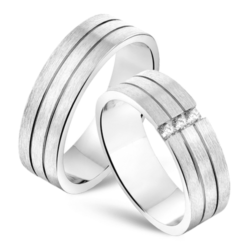 Een hele fraaie, tijdloze ringenset waarmee je iedereen blij maakt. Deze set bestaat uit twee mat afgewerkte 925 sterling zilveren ringen die 6 mm breed zijn, waarvan er eentje maarliefst drie zirkonia's heeft.