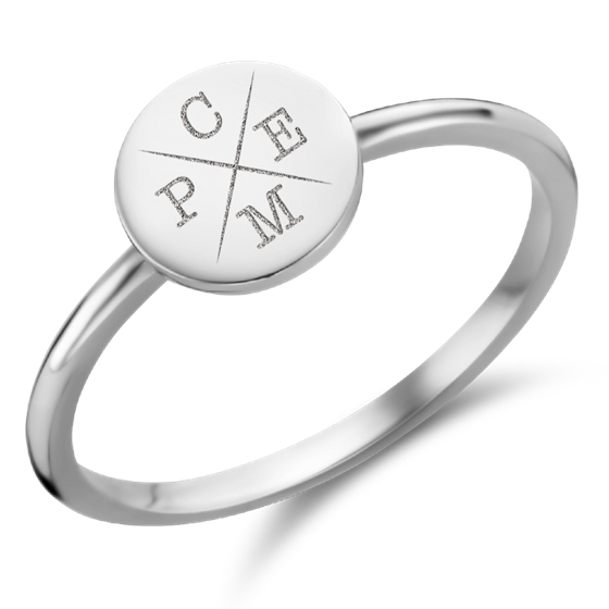 Disc zilveren zegelring met vier initialen Names4Ever