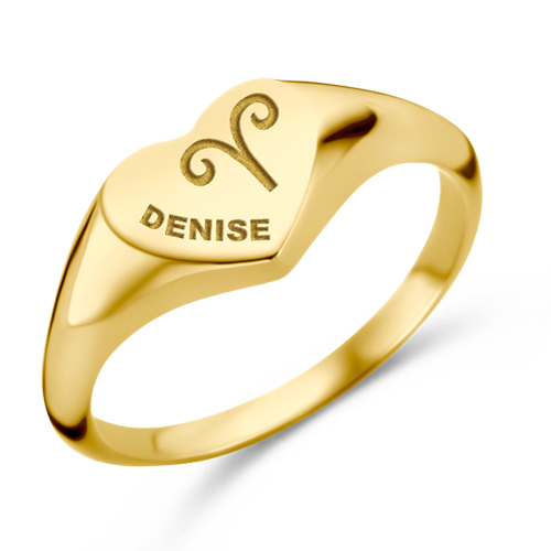 Hartvormige Gouden zegelring met sterrenbeeld en naamgravure