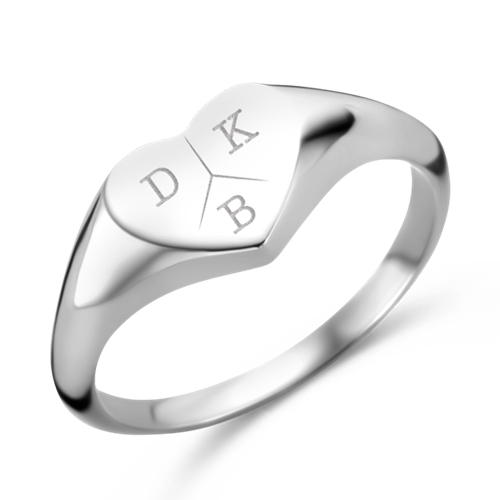 Hartvormige zilveren zegelring met drie initialen Names4Ever