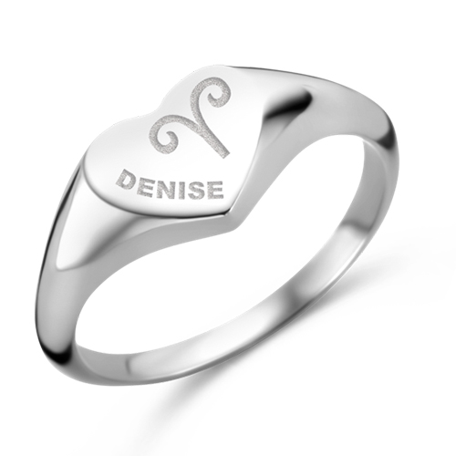 Hartvormige Zilveren zegelring met sterrenbeeld en naamgravure Names4Ever