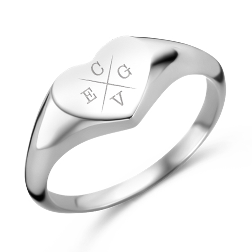 Hartvormige zilveren zegelring met vier initialen Names4Ever