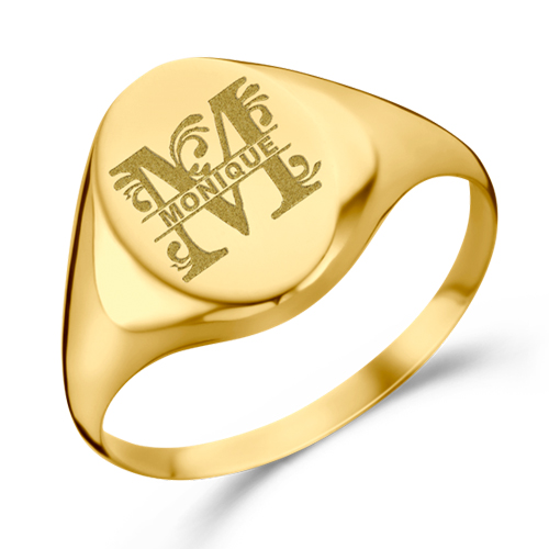 Ovale Gouden zegelring met een initiaal en naam Names4ever