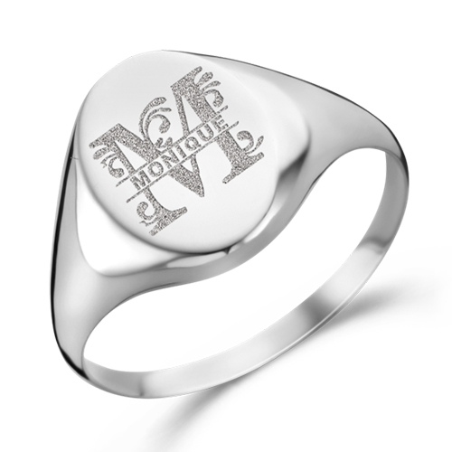 Ovale zilveren zegelring met een initiaal en naam Names4ever