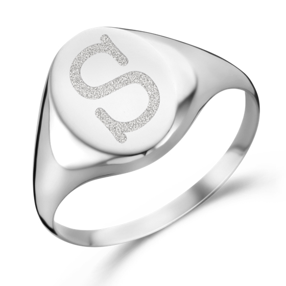 Ovale zilveren zegelring met een initiaal Names4Ever