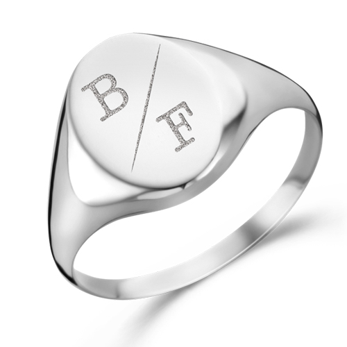 Ovale zilveren zegelring met twee initialen Names4Ever