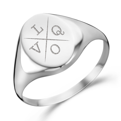 Ovale zilveren zegelring met vier initialen Names4Ever