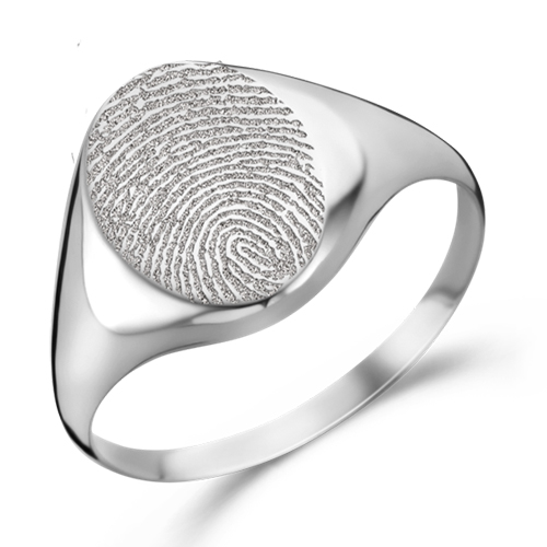 Ovale Zilveren zegelring met vingerafdruk Names4Ever