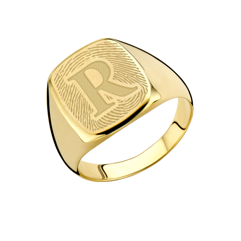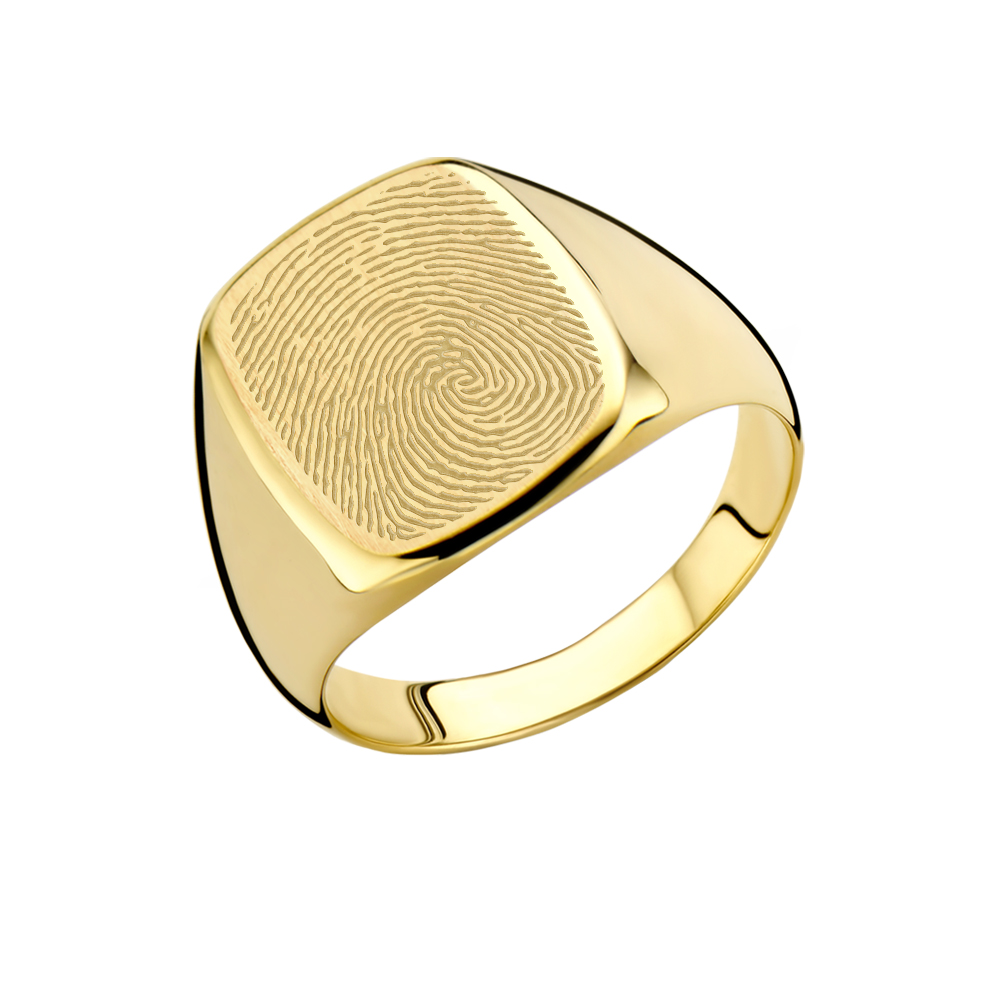 Rechthoekige gouden zegelring en vingerafdruk Names4Ever