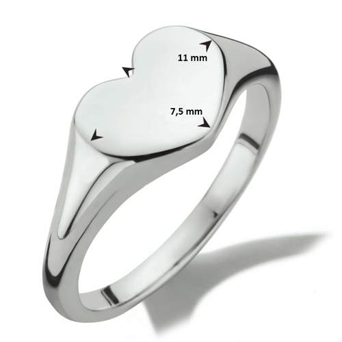 Deze mooie hartvormige zegelring is gemaakt van gerhodineerd 925 zilver en heeft een hoogglanzen afwerking. De hartvormige graveerplaat heeft een afmeting van 11 mm bij 7,5mm.  Een Zegelring kan bij ons gepersonaliseerd worden met een letter.
