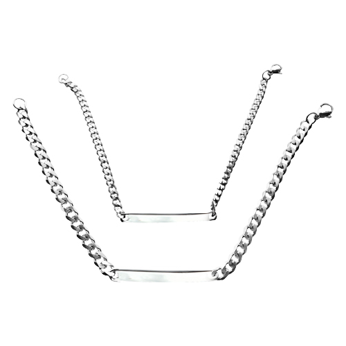 Set van twee hoogglans RVS plaatarmbanden. Deze luxe set bestaat uit één dames plaatarmband en één heren plaatarmband. De prijs is inclusief het graveren van uw eigen tekst aan de voorzijde. Ook kunt u de achterzijde laten graveren van de armbanden. De tekst voegt u eenvoudig toe in de vervolgstappen.